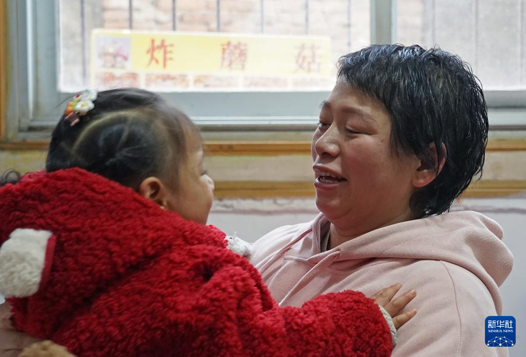 忙碌间隙,樊检检在路边哄女儿睡觉(1月7日摄)。
