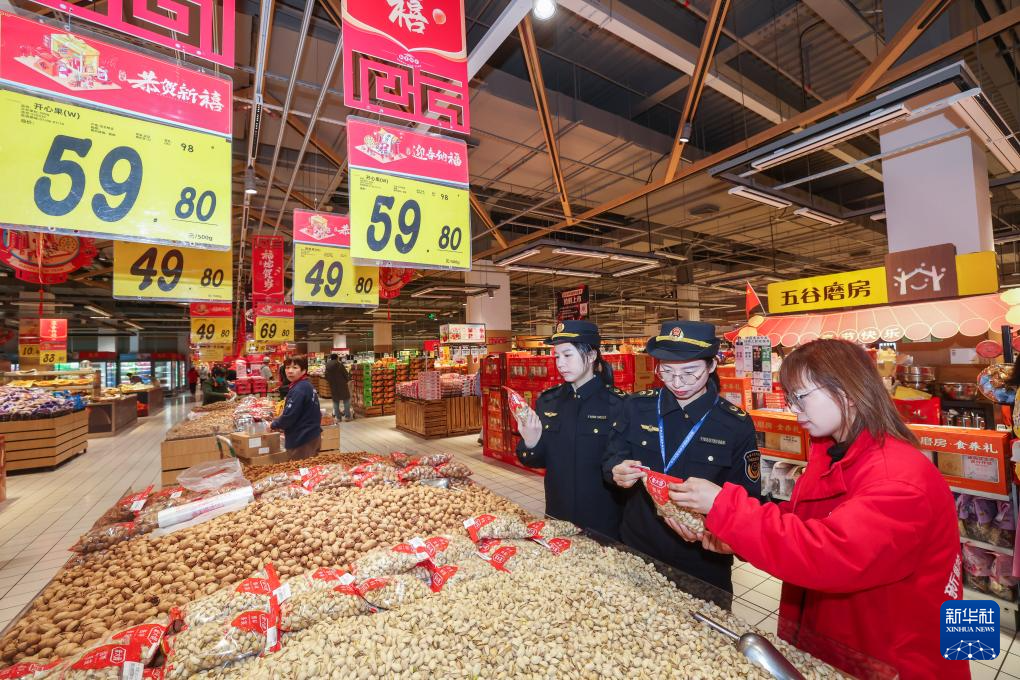 随着春节的临近,浙江省嘉兴市南湖区各大市场和商超里各类节庆物品销售火爆。为保障春节期间市场秩序,保护消费者权益,相关部门对节前市场开展专项检查,紧盯节日热销食品、保健品等,对散装食品储存销售、标签标识等情况进行全面排查。
