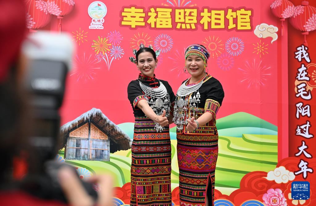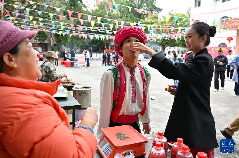 当日,海南省五指山市毛阳镇的居民和游客在年货集市上选购年货、参加活动,迎接即将到来的农历新年。