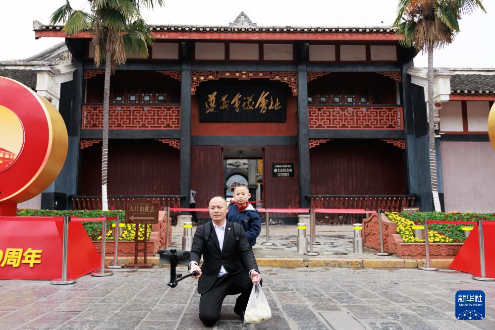 遵义会议召开90周年之际,不少游客来到位于贵州省遵义市的遵义会议会址参观,感受红色文化,追寻红色记忆。
