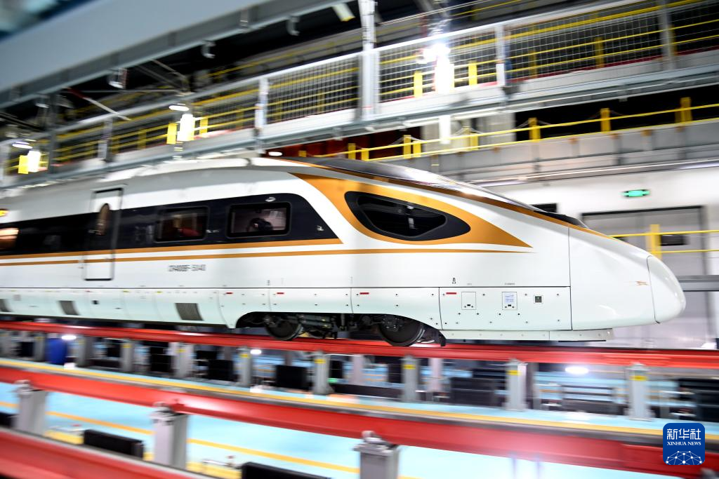 1月15日,一辆“复兴号”列车驶入廊坊动车运用所。