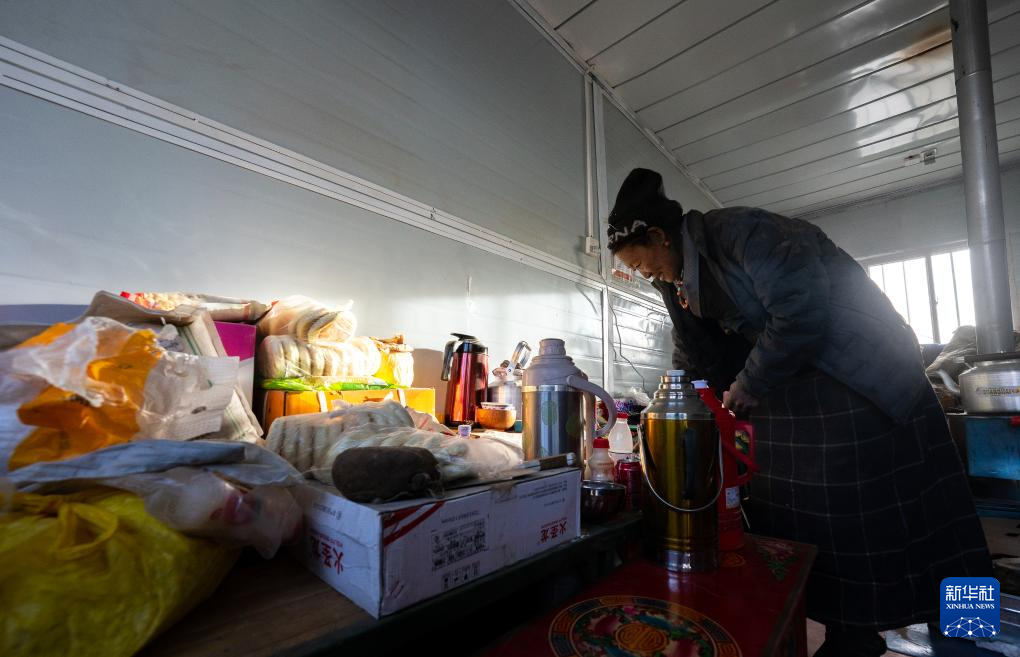 在定日县长所乡古荣村,定日县安多饭馆的吉琼在为安置点的群众做晚饭(1月15日摄)。