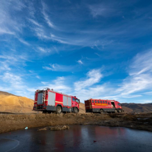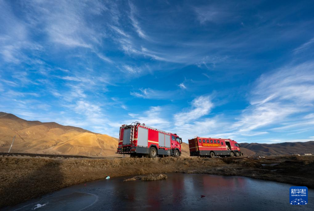 这是西藏消防救援总队调派至长所乡森嘎村安置点的淋浴车(右),可为受灾群众提供热水淋浴(1月15日摄)。