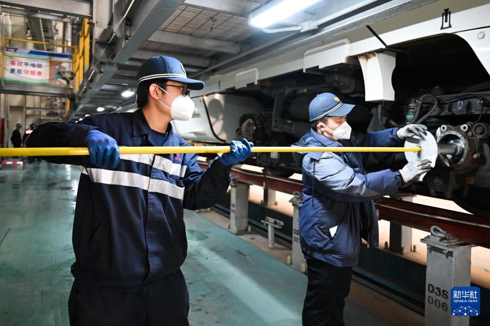 春运到来,中国铁路青藏集团有限公司西宁车辆段动车运用车间工作人员加大对动车的检修保养力度,守护旅客平安出行。