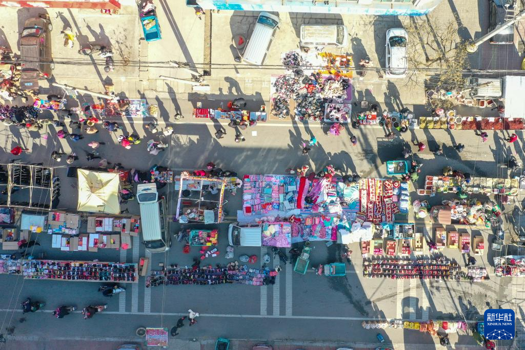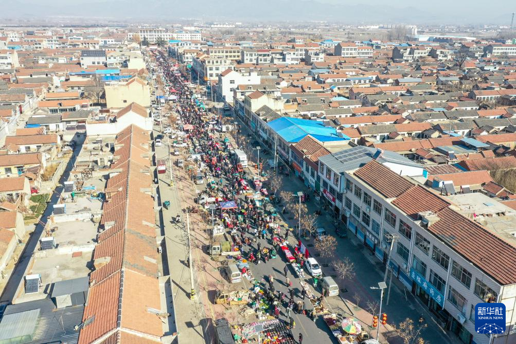 这是1月17日拍摄的寨里镇大集(无人机照片)。