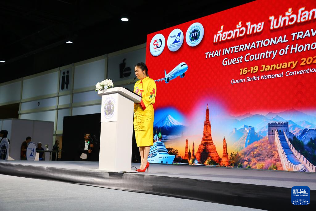1月16日,泰国国家旅游局局长塔帕妮在曼谷举办的第30届泰国国际旅游展开幕式上致辞。