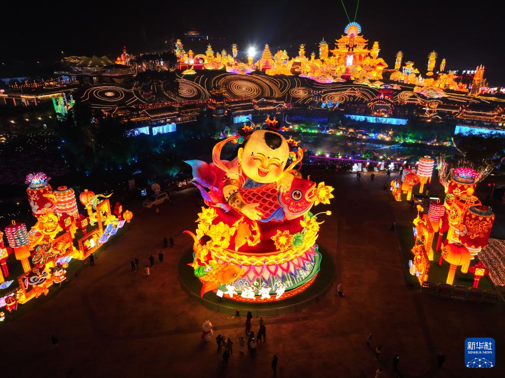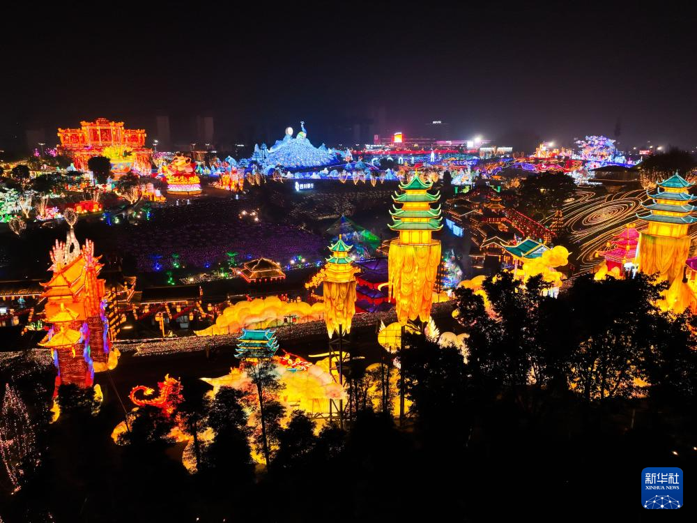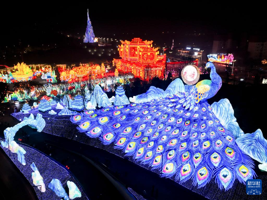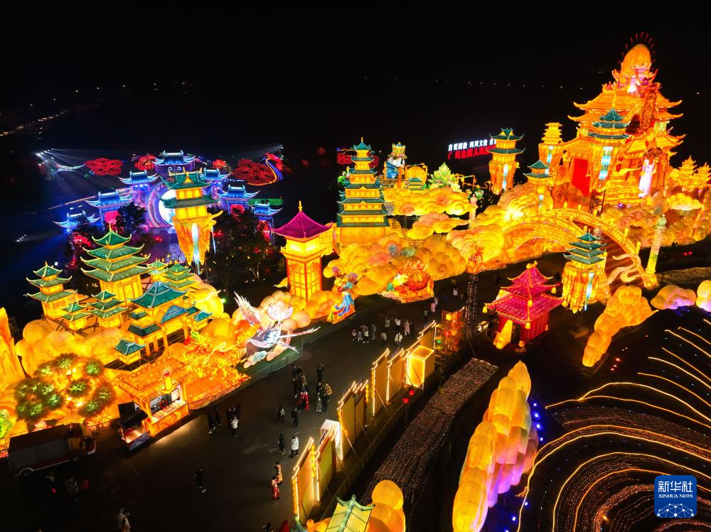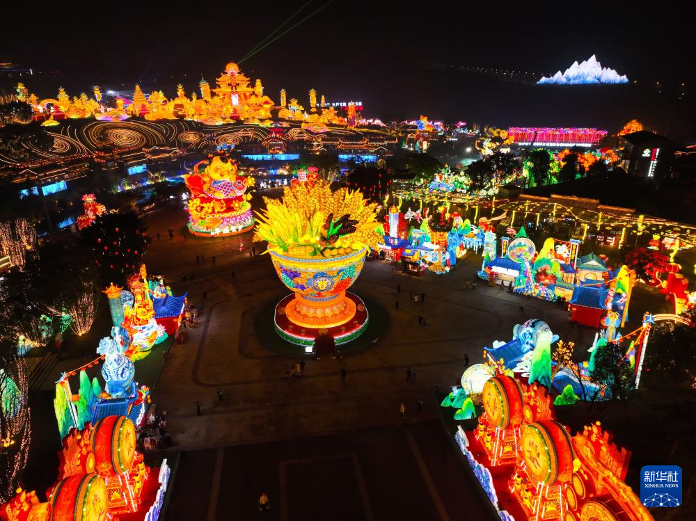这是1月17日在四川省自贡市中华彩灯大世界拍摄的彩灯灯组(无人机照片)。