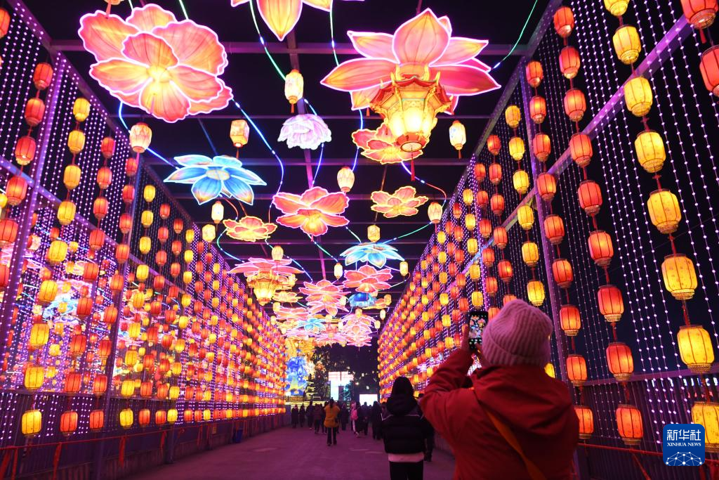 1月17日,游客在四川省自贡市中华彩灯大世界拍摄彩灯。