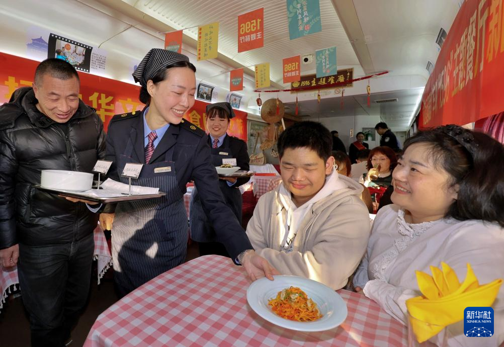 1月13日,乘客在铁路杭州客运段甬广车队K212次列车上品尝新品菜肴。
