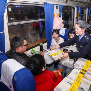 在列车餐车上吃一顿热气腾腾、香气四溢的餐食,是许多乘客关于旅途的美好记忆。今年春运期间,铁路杭州客运段将列车上的“一碗好饭”作为提高客运服务质量、提升旅客出行体验的重点环节。该段下属的甬广车队K212/209、K210/211次列车组织餐车厨师交流学习,更新餐车菜单、推出多种新品菜肴,并在普速列车上也实行远程点餐、送餐到座的服务,用饱含烟火气的“一碗好饭”温暖旅客的春运归途。