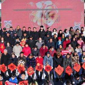 1月18日,戴家村村民来到村委广场拍摄“全村福”照片。