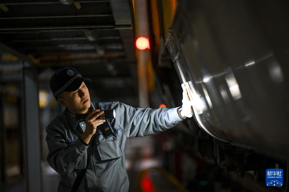 1月17日晚,中国铁路呼和浩特局集团有限公司包头车辆段呼和浩特东动车所内灯火通明,工作人员有序开展各项检查、维修等工作,确保动车组列车正常运行、保障旅客春运出行安全。