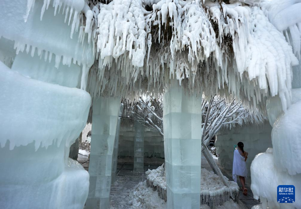 1月17日,在沈阳的清河半岛温泉度假酒店,游客体验冰雪温泉。