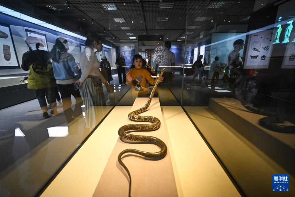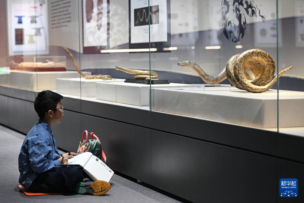 乙巳蛇年将至,近日在国家自然博物馆举办的“灵蛇献瑞——2025乙巳蛇年生肖文物大联展”吸引观众前来参观。展览展出近50件蛇类标本和大量与蛇有关的文物、工艺品等。