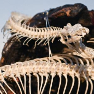1月18日在展览现场拍摄的蛇骨骼标本。