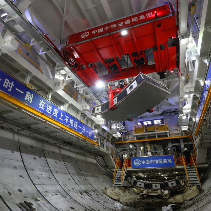 1月18日拍摄的“领航号”盾构机管片吊装施工现场。