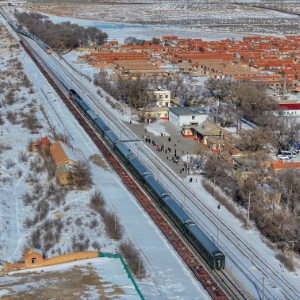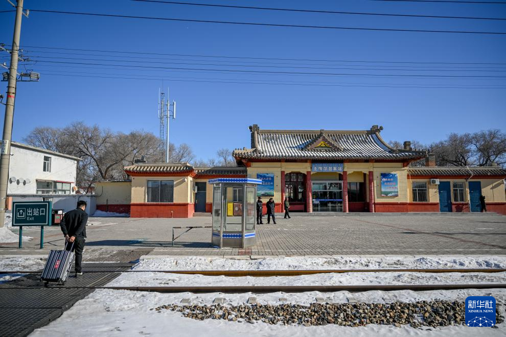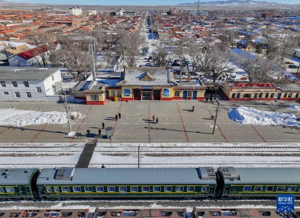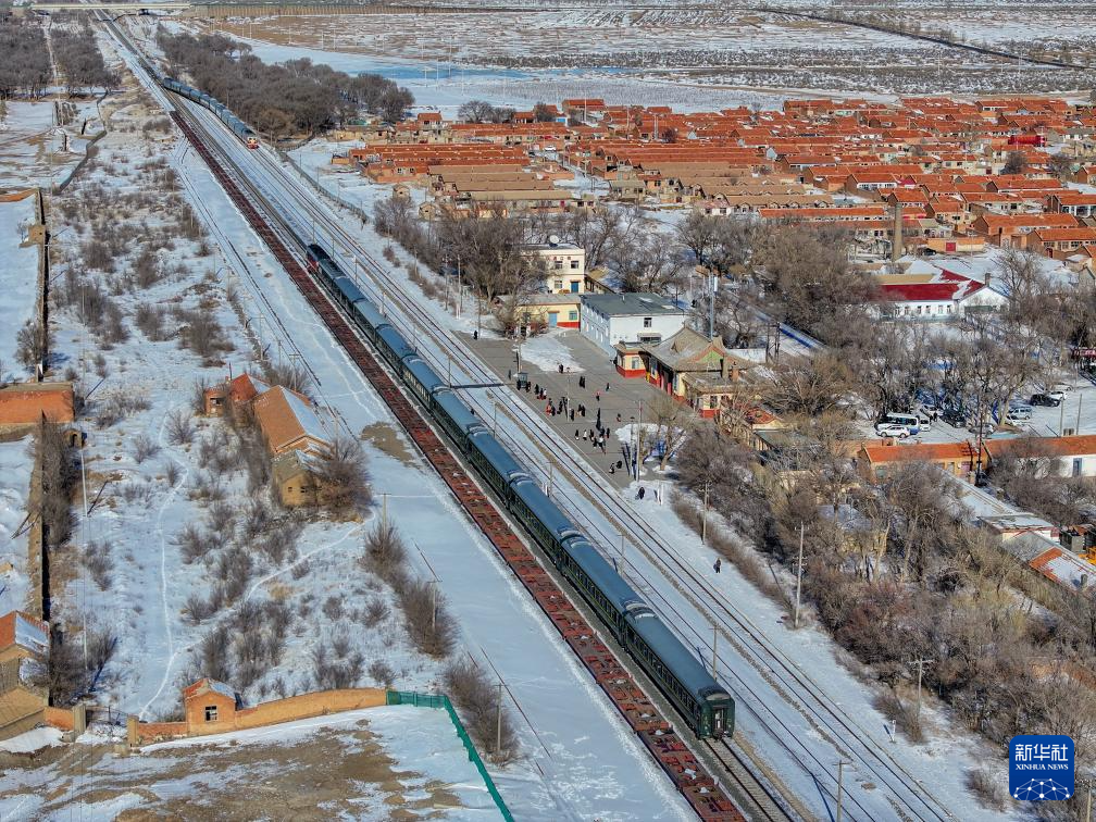 1月19日,列车停靠土牧尔台站(无人机照片)。