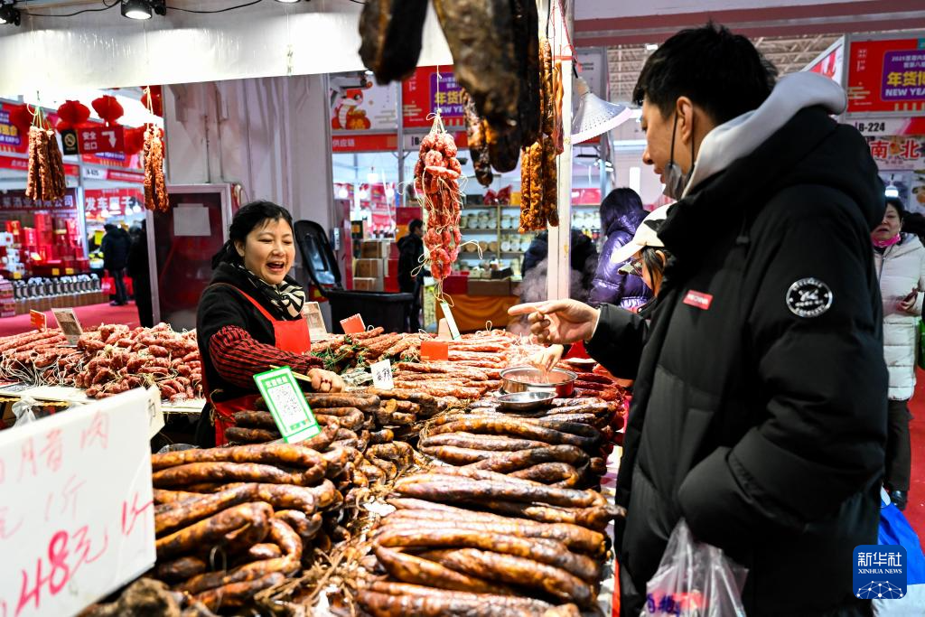 临近春节,在内蒙古国际会展中心举办的第八届呼和浩特年货博览会上,市民们选购各色年货,感受年味,喜迎新春。