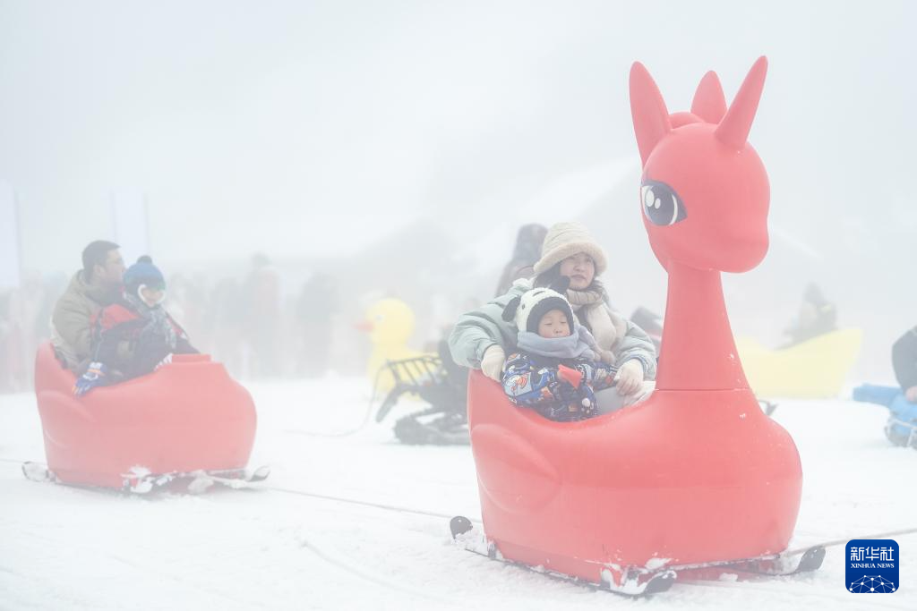 1月18日,在重庆市南川区金佛山西坡滑雪场,游客在体验冰雪娱乐项目。