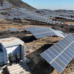 1月18日,工人在河北省邢台市信都区新型电力系统示范工程——独立储能电站巡检。