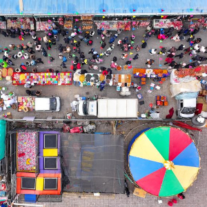1月21日,人们在金贵集贸市场选购年货(无人机照片)。