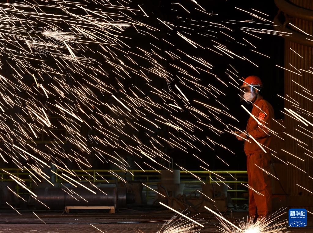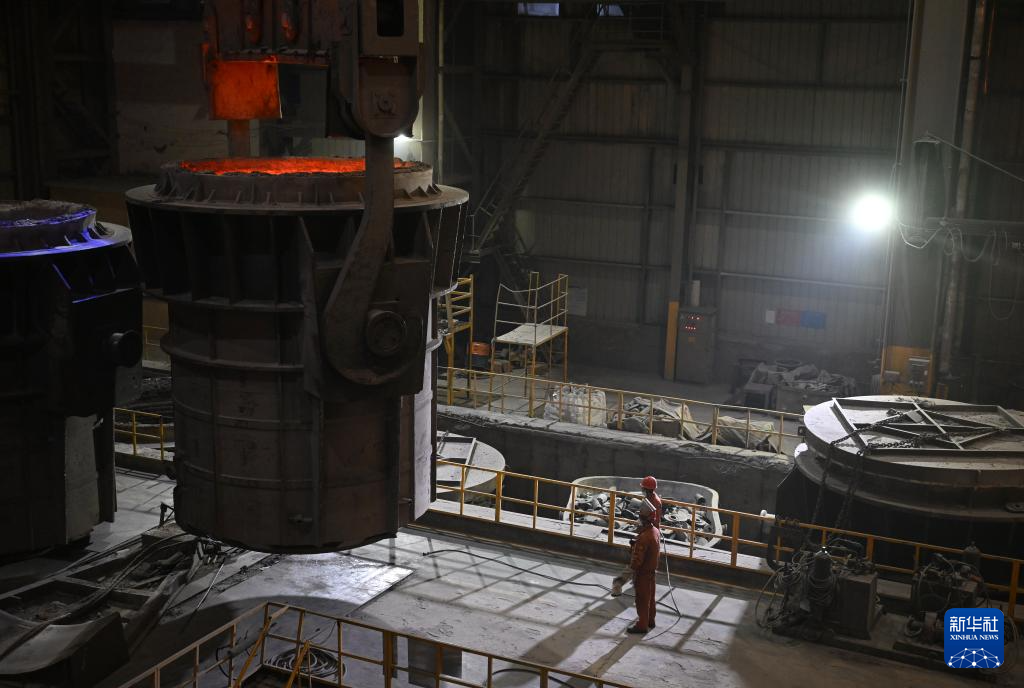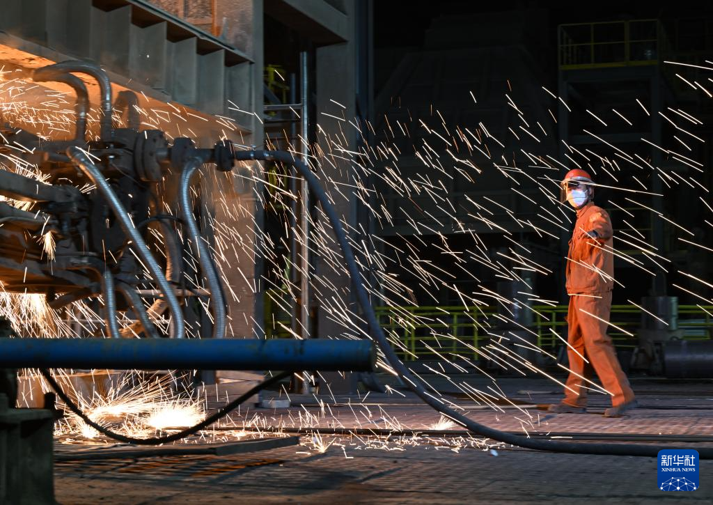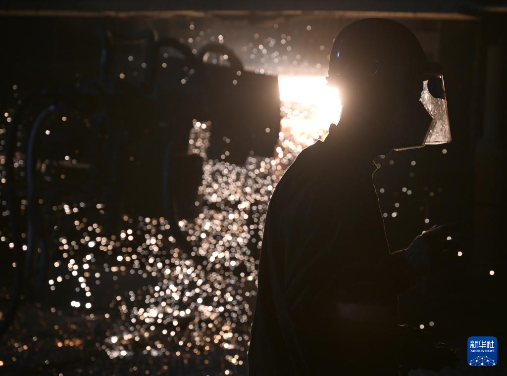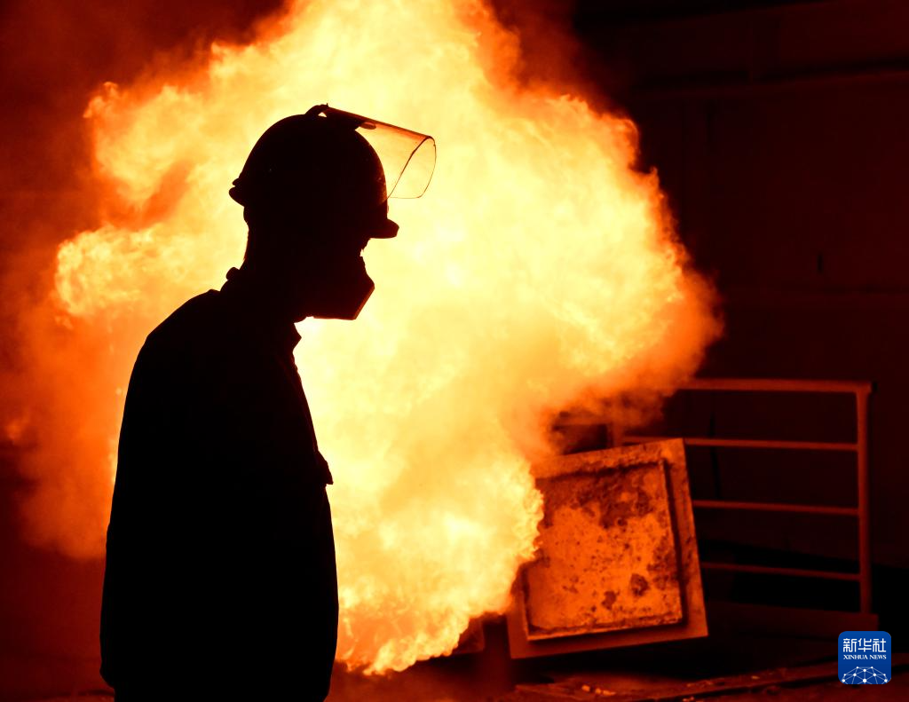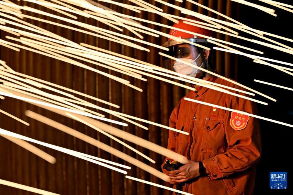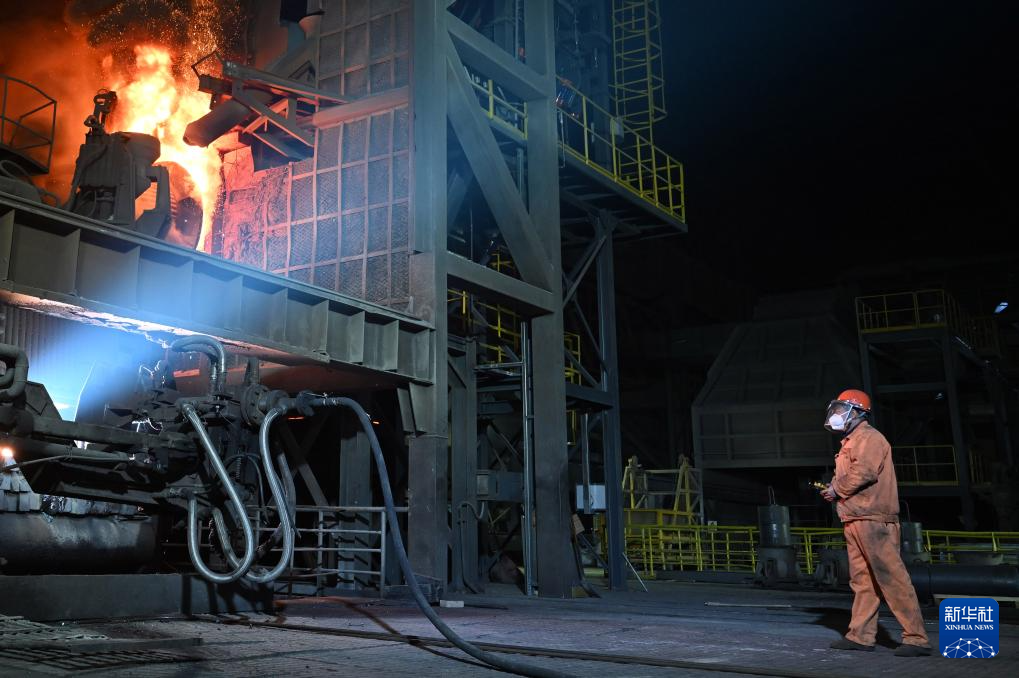 冬夜里,位于河南洛阳的中信重工机械股份有限公司冶炼车间内机器轰鸣,钢花飞溅。1600多摄氏度的钢水将炉前温度带到了近50摄氏度。电炉班的工人顶着高温,头戴防护盔,身着阻燃服,手持测温探棒在炉前忙碌,与钢花共舞。