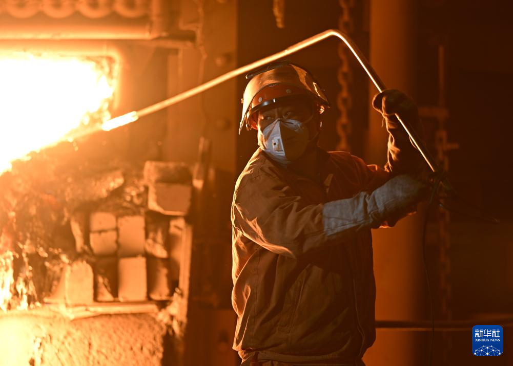 1月21日,工人在初炼炉前进行吹氧作业。