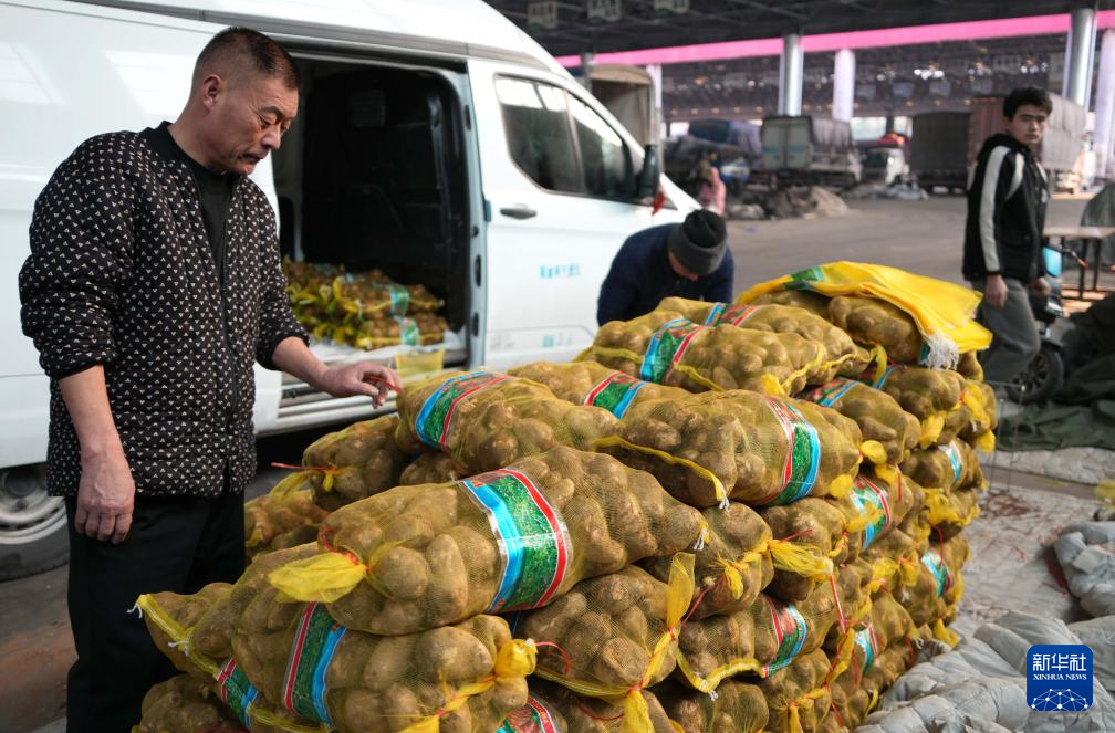 1月21日,在位于山东省寿光市的寿光地利农产品物流园,工作人员在查看即将发货的蔬菜。
