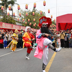 1月22日,人们在深圳罗湖区爱国路花市观看潮汕英歌舞表演。