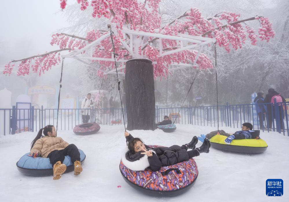 1月12日,在四川峨眉山景区,小朋友在参与戏雪项目。