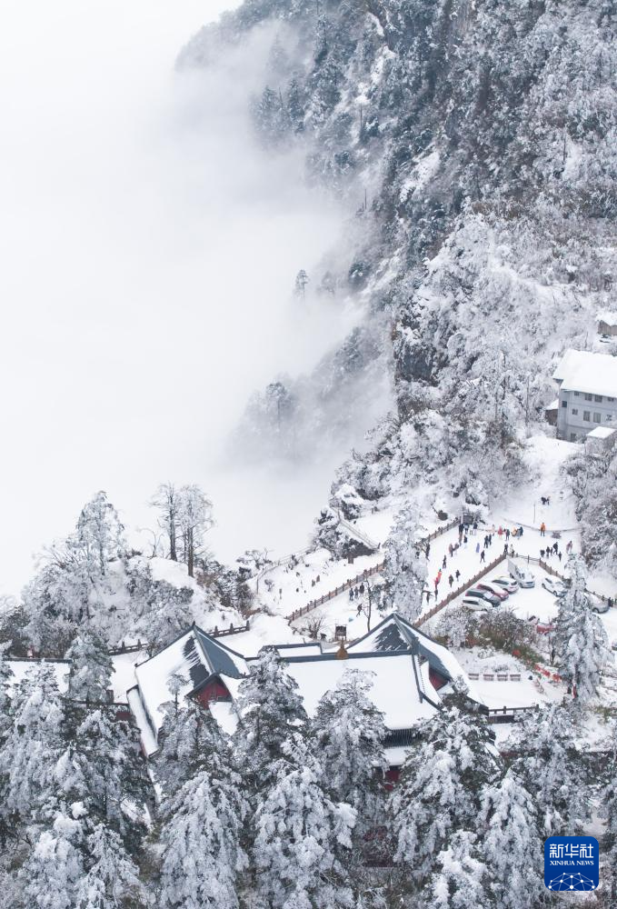 1月12日拍摄的四川峨眉山景区雷洞坪一景(无人机照片)。