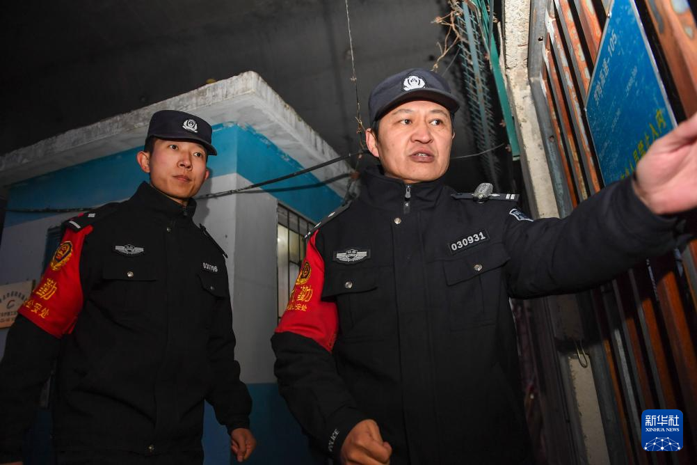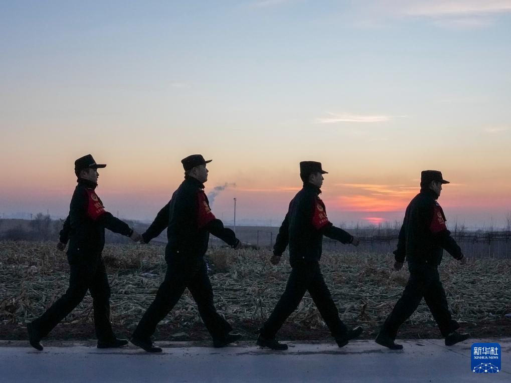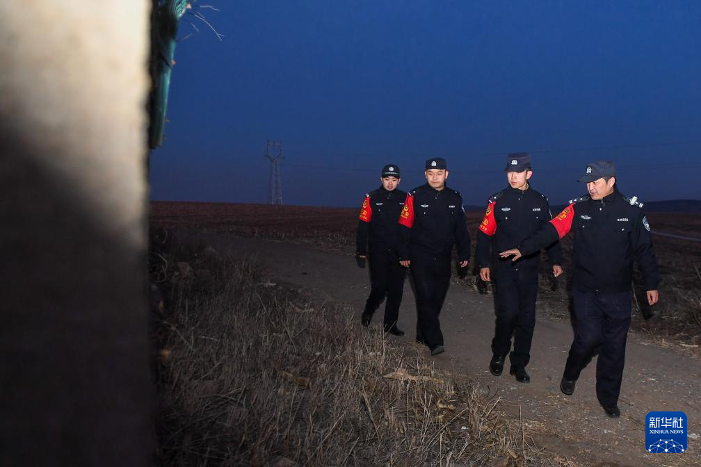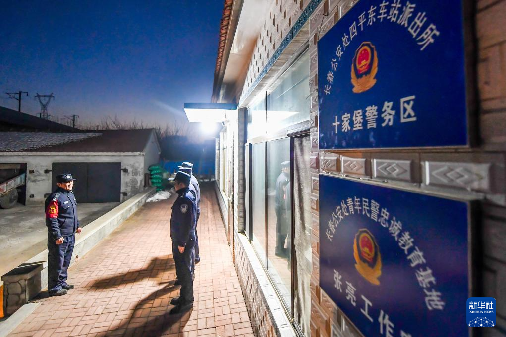 1月20日,张亮(右一)带领徒弟们在辖区巡逻。