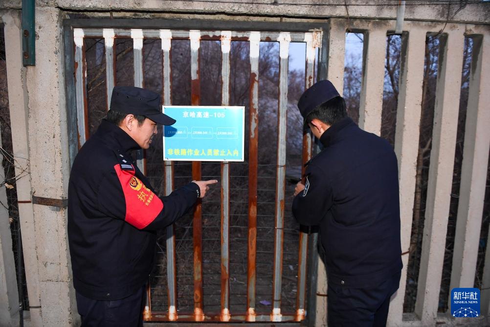 1月20日,张亮(右)与徒弟韩士博检查铁路沿线设施。