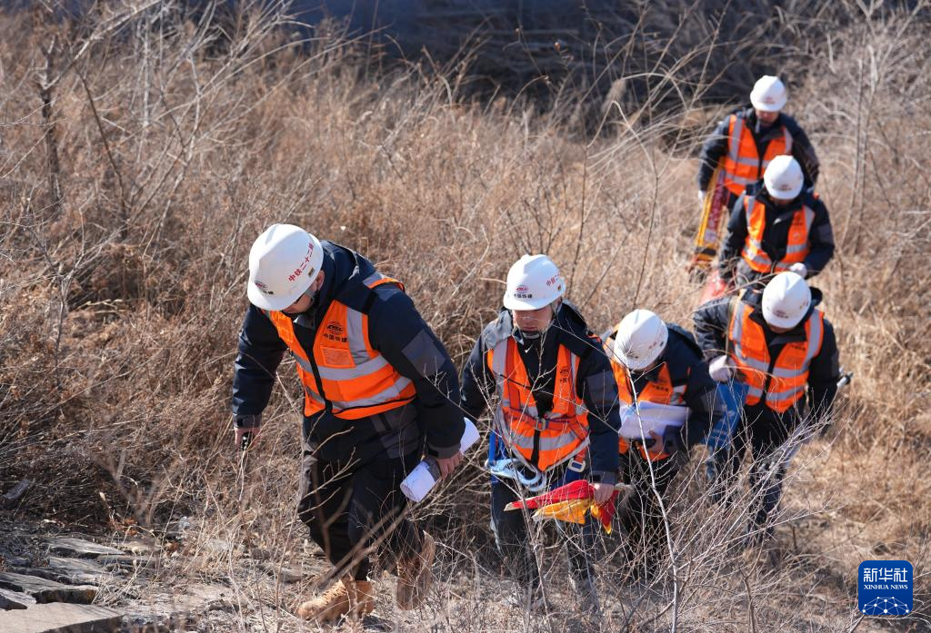 1月23日,姜跃龙(左一)和同事前往换梁施工作业现场。
