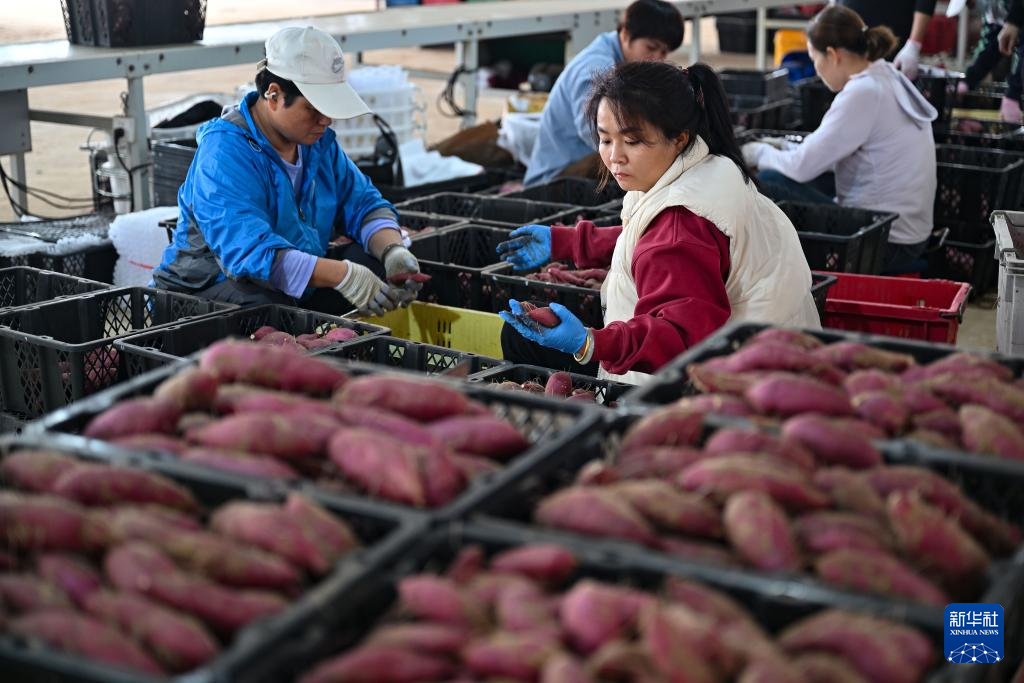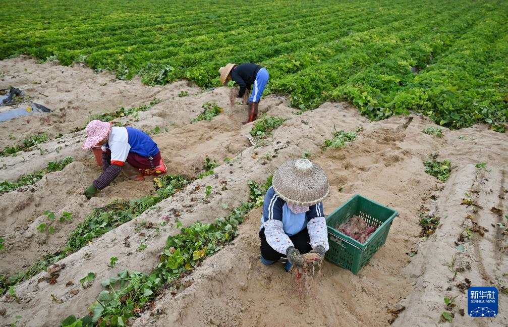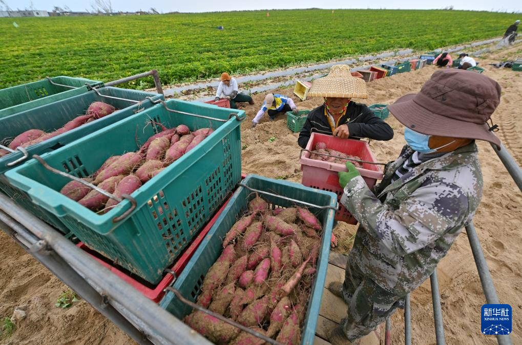 冬日里,海南省文昌市铺前镇的地瓜丰收,人们忙着收获、分拣、装箱,田间地头一片繁忙景象。