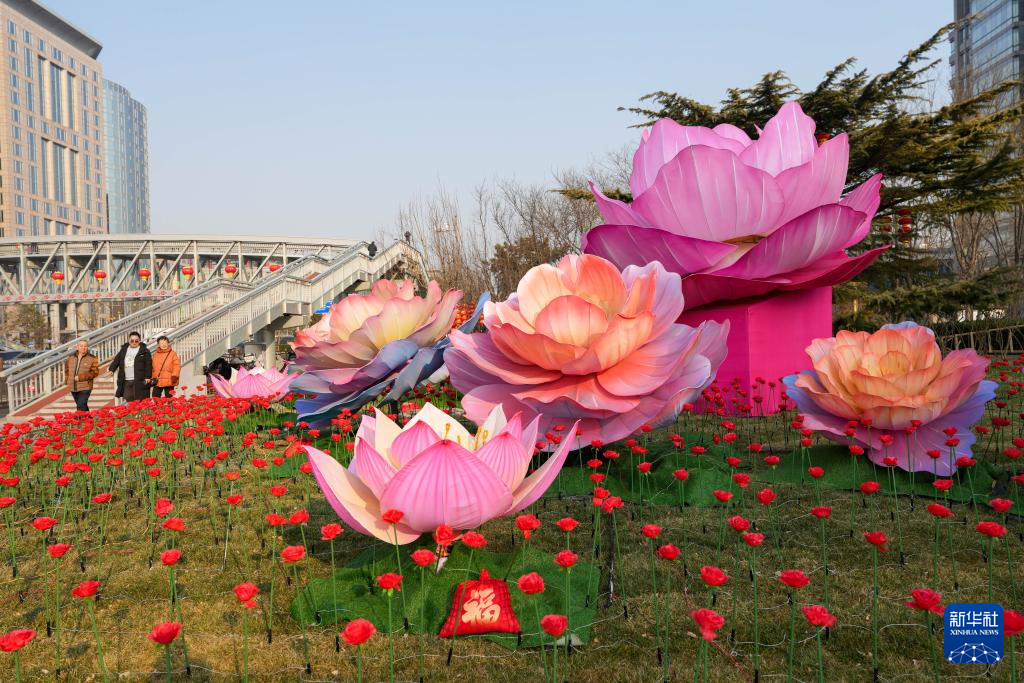为传承春节文化,烘托传统年味,北京以“非遗贺新春 京城过大年”为主题,布置春节景观,迎接新春佳节。据介绍,北京共悬挂灯笼灯饰及各类装饰26万余件,设置景观小品256余处,在10处地标建筑播放春节主题光影艺术,开启2969处景观照明设施,营造出喜庆热闹的节日氛围。