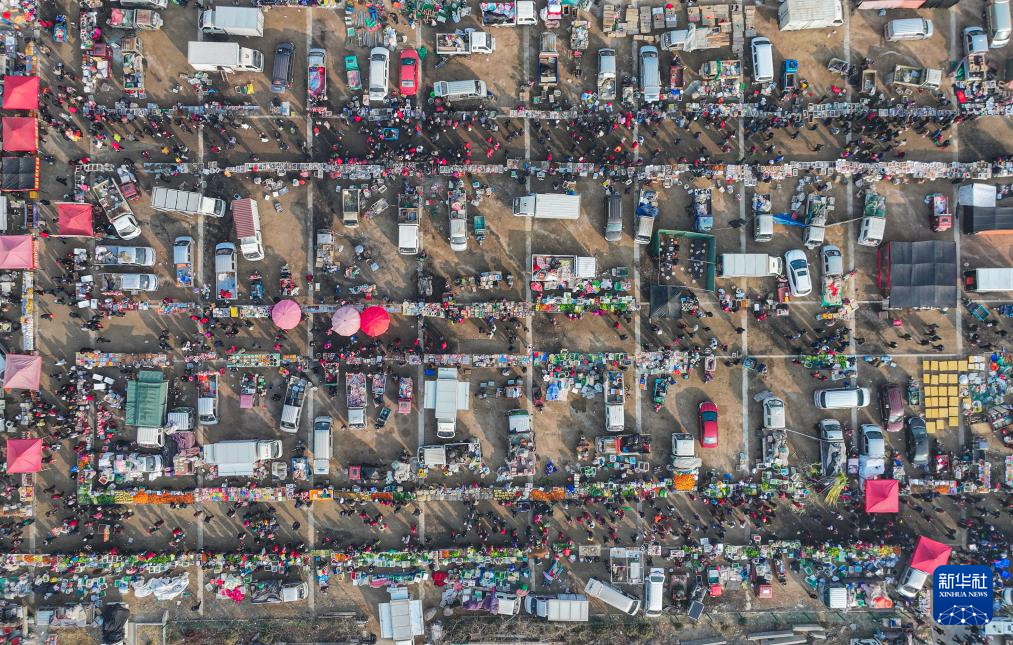 1月23日,浙江省台州市仙居县下各镇乡村大集人头攒动,热闹非凡(无人机照片)。