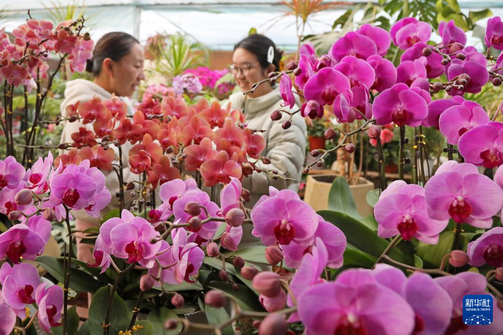 1月22日,顾客在山东省枣庄市市中区一家花卉市场选购年宵花。