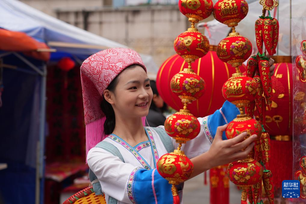 1月23日,市民在贵州省安顺市西秀区年货市场选购新年饰品。