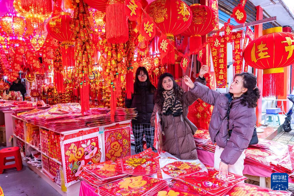 新春将至,人们选购各色年货,在浓浓年味中喜迎蛇年。