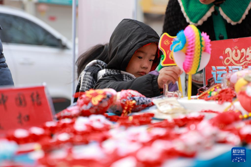 1月23日,人们在河北省遵化市团瓢庄镇山里各庄村的集市上选购剪纸饰品。