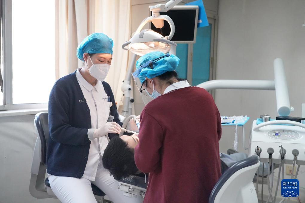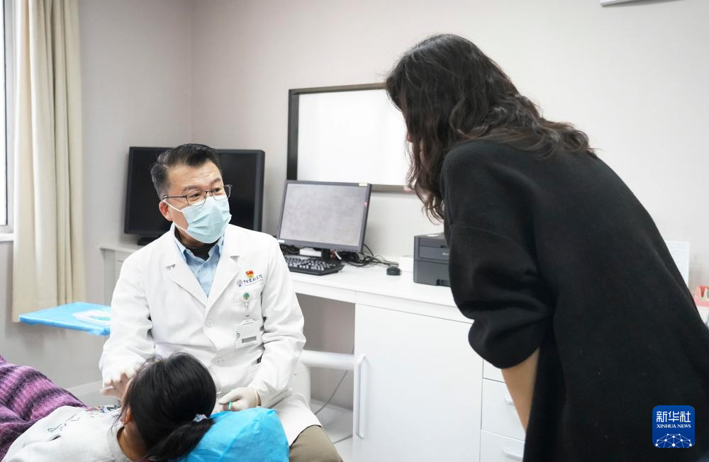 1月23日,在中日友好医院儿童牙颌面畸形早期矫治中心,护士金钰(左)为患者治疗。
