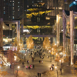 市民游客在西安万象城游览购物(1月23日摄,无人机照片)。