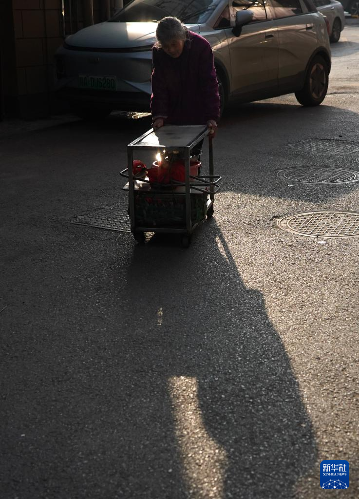 1月20日,程奶奶推着老顾客为她定制的小推车,前往巷子口摆摊。