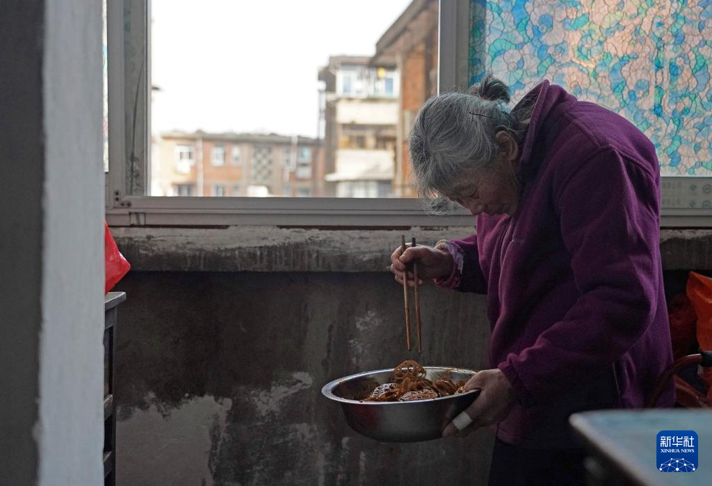 1月20日,程奶奶在家中整理头发,准备出门摆摊。