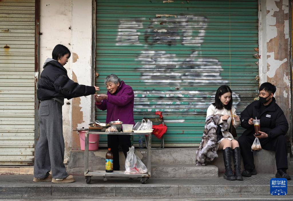 1月20日,程奶奶(左二)给顾客制作小吃。
