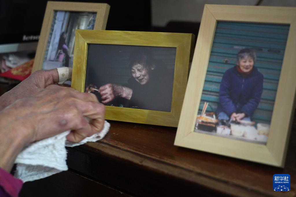 1月20日,程奶奶在家中擦拭顾客给她拍摄的照片。