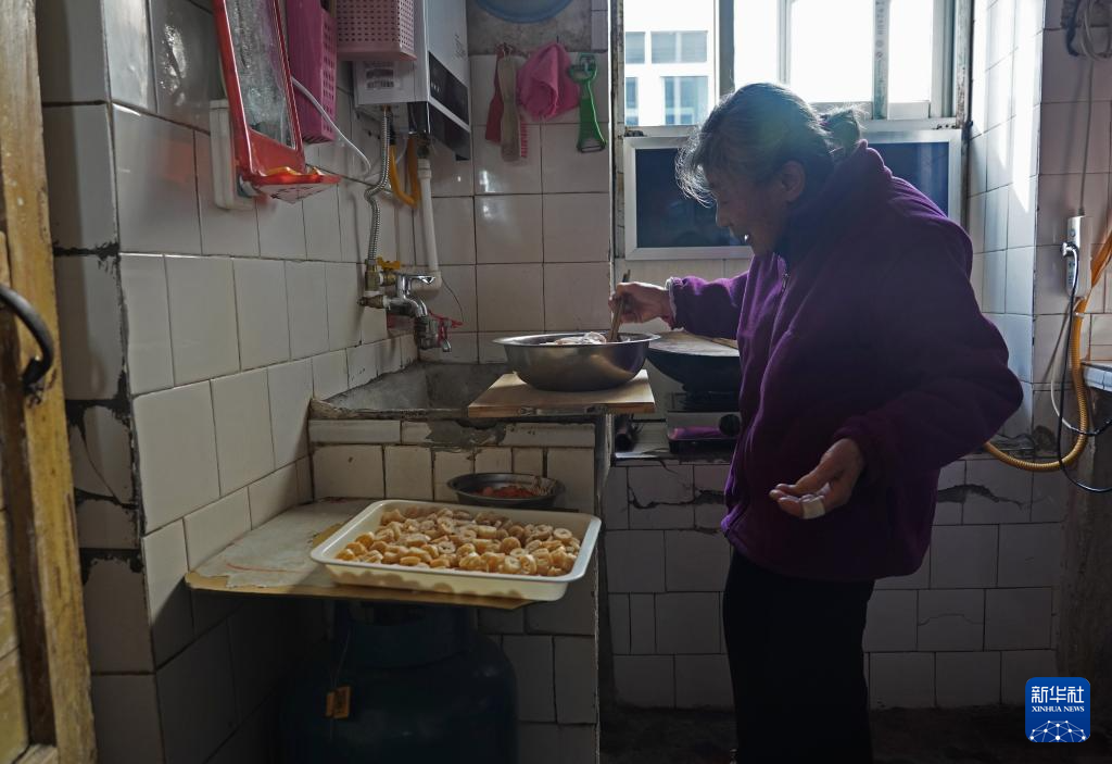 1月20日,程奶奶在家中加工出摊的食材。