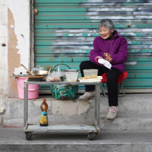 1月20日,程奶奶下楼出门摆摊。