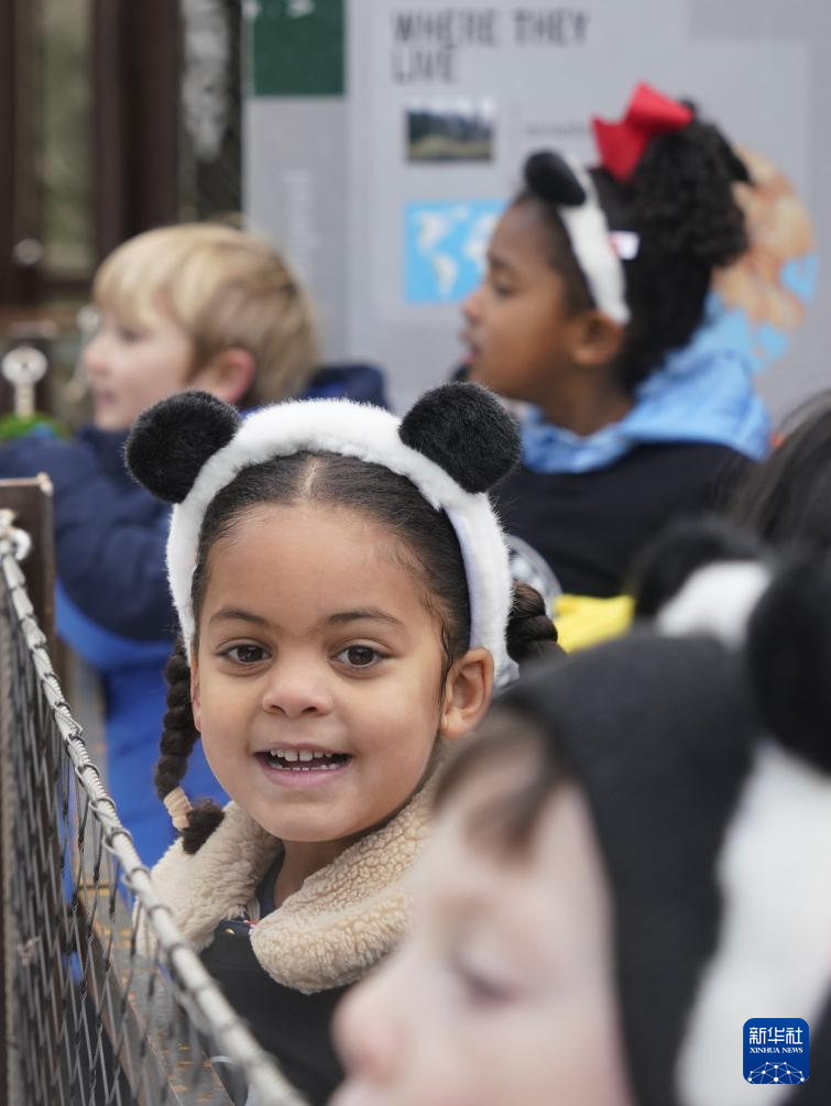 1月24日,在美国首都华盛顿的史密森学会国家动物园,孩子们在大熊猫馆开馆仪式上表演。